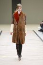 It was minimal to the max: long straight coats, two-colored pants, sleeveless tops at pleated skirts and a graphic play with contrasting colors in shirts and turtlenecks. No jewelry, onlu twotoned pointed shoes, two new handbags – that’s it. The only indulging part were the fur-coats and deux-pieces in a soft furry fabric.
