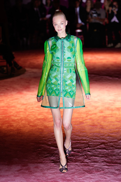 Zac Posen, Sonia Rykiel, Frankie Morello, D Squared and others gave us the answer: you just wear a transparent plastic raincoat. In this way you’re still showing the great outfit you’re wearing underneath and your silhouette stays visible too.