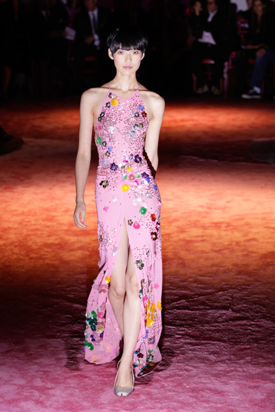 It was the first time Zac Posen presented his collection during Paris Fashion Week. It looks he brought American glamour to France. But is also looked as if he thinks women have nothing better to do than going to cocktails and parties – besides a few daytime-clothes his collection was all about eveningwear.