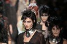 At Jean Paul Gaultier the models wore enormous pieces of metallic jewelry, at Burberry and Balmain spikes gave the looks some extra edge. Riccardo Tisci mixed Gothic and punk by presenting sheer black designs with lots op zippers.