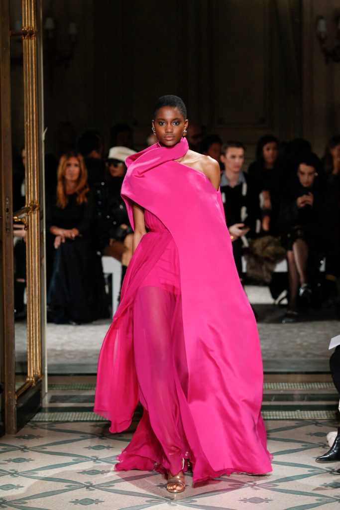 Sugar sweet and fit for a queen. That’s one way to sum up these haute couture dresses. Turns out bright pink was the color of choice at many of the fashion houses. Givenchy, Valentino and Giambattista Valli all went for the brightest of pinks. While Chanel, Dior and Balmain opted for powdery pink. Anyway, the message was sweet, girly and loud. With statement skirts and shoulders, dramatic bows, tons of tule, lots of layers and the most gorgeous and detailed embroideries. Now we just need enough special occasions to wear these kinds of dresses to.