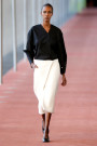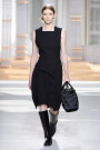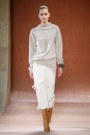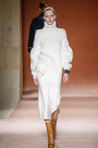 Although the message seems pretty clear, for the models the way through it wasn’t clear at all. Fourteen different women walked down the runway with their vision completely blurred by a cloud of hair that ballooned around their heads. Like magnificent hair balls from your cat (ugh!). Although the message of this collection might be hard, the execution was pretty soft. Soft leathers, lots of draping, twisting and folding, soft lines and silhouettes, fuzzed-out knit mohair, bubble-shaped jackets, crushed velvet capes and sleeveless tunics. Colors ranged from creamy white to splashes of pistachio green, pink, vermilion, orange, eggplant, brown and black. Even the shoes seem to be pretty comfortable: thigh-high leather sneakers. We really appreciate and support his concerns, but even more so his clothes and sense of timelessness and style.