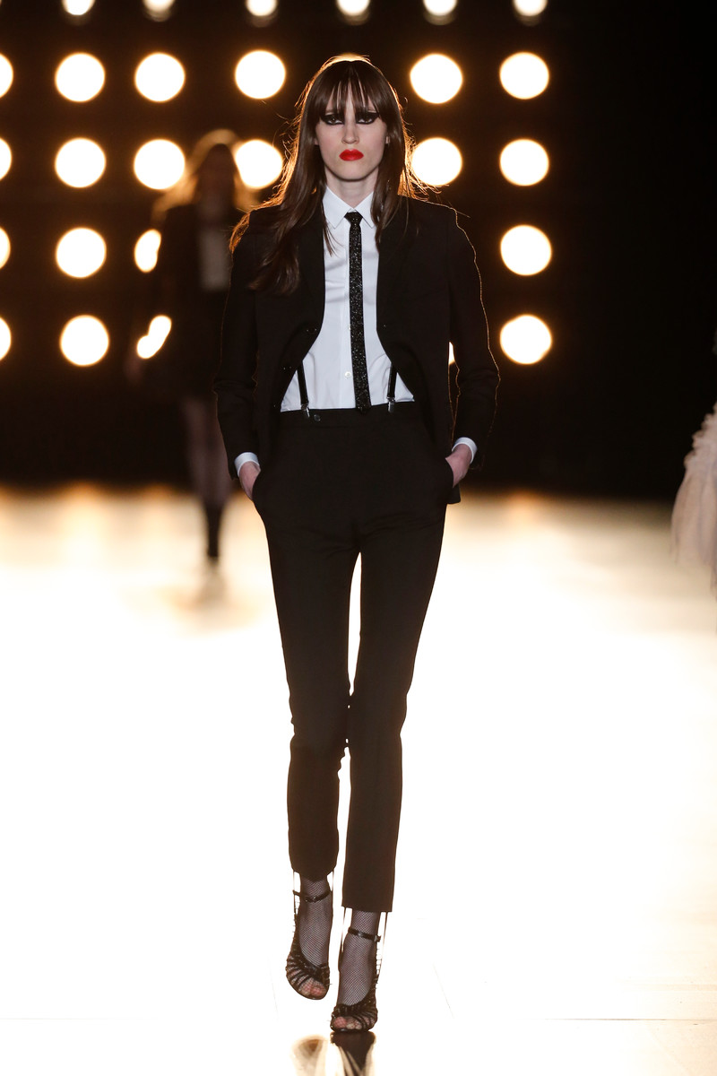 Fully buttoned, worn wit a turtle neck; the female two piece doesn’t have to state the obvious sex appeal anymore. With the whole gender blending game going on even the misses can rock the ultimate tweed pants and jacket. Details like a high ponytail (Christian Dior), a red lip (Saint Laurent), an open shoe (Louis Vuitton) or small belt (Hermes) are enough to give her outfit it’s femininity. Checked (Paul & Joe), colored (Dior) or army inspired (Chloé) inspired by his wardrobe you’ll be amazed how strong of a look you can pull off. Just don’t be afraid to loose some of that in your face sexiness, have your pick from one of the above and suit yourself!