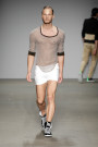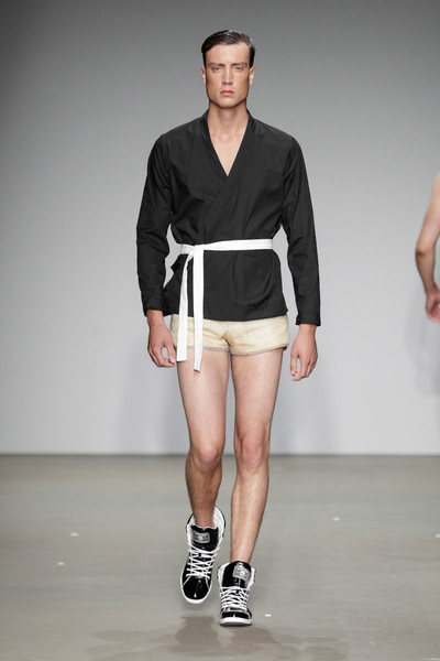 It was his trip to Japan that inspired designer Allan Vos for his spring/summer show. He added some Middle East touches to his costume inspired, slightly feminine looks. No trends here, Allan designed exactly what he likes. For this collection he took things to the next level by using external seamstresses and by letting certain fabrics being printed elsewhere, so he stated in his opening video. He sent out beefy, tanned male models wearing tight shorts, cheapest viagra to buy online in uk striped pants, sheer body tight sweaters and slightly feminine inspired jackets. Kimono-like tops tied together around the models waists were Allan’s most obvious Japan reference. Other outstanding pieces were a pair of extremely wide gold/yellow pleated pants and a graphical printed black and white legging. Extra attention was paid to the collars of the tops and the accessories (like bold sneakers and wooden sunglasses) of the looks. The final outfit was a pair of briefs and a jacket, which the guy really pulled off. Yet these models would have looked good in just about anything…