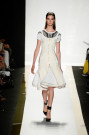 The show began with a flurry of zippers, up the front, around the bodice; they also edged ruffles that were fashioned into peplums and godet skirts, resulting in a nice contrast to the feminine skirts that peeked out from underneath. The duo kept their colors subdued.