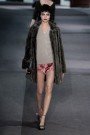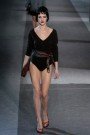 That was grunge-de-luxe what Marc Jacobs designed for Louis Vuitton. A bit ironic and provocative, but in a beautiful and sensual way. And melancholic. The set was a circular “hotel” constructed within the vast tent pitched in a Louvre courtyard. The wallpapered corridor housed 50 closed doors which the models opened and exited. The audience became voyeurs, as each “room” featured projections of hotel guests lounging and getting dressed, unaware of the scores of peering eyes.