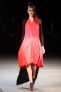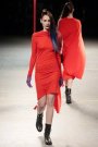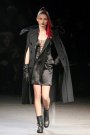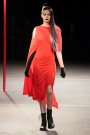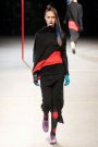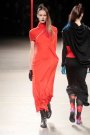 The show was about covering up and revealing as warm winter coats and capes were matched with cut out, asymmetrical draped dresses. Besides a punky touch (seen through the hair, the boots and the use of color) the collection had a sporty vibe as well (visible through the jersey fabrics, the duo colored leggings and the fingerless tassled ?! gloves).