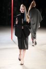 It is the second season April Chrichton is designing the collection for the house of Sonia Rykiel. This spring it’s about bold colors and style, but for next fall it’s less loud, more simple and pared down. Like the skirtsuits with a kick flare to the skirt, shrunken jackets, jumpers and little black skirts. Shades were mainly black, white and biscuit. For eveningwear the Rykiel-girl shows her flirty side, with floaty dresses, sometimes in sheer black or with puffy little sleeves.