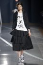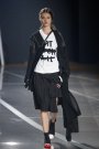 As always with Yohji Yamamoto the red-lipped girls appeared sporty and tough. Walking the runway (on all kinds of different sneakers) with their hands in their pockets, the seemed careless. Yet this time around there was a slightly feminine touch to some of the looks. Yohji (and the new creative director Dirk Schönenberg) came up with some silk outfits and gave their designs ruffles. They were a far cry from the super feminine Valentino ruffles, but they did add a (welcome) girly twist to the collection.