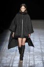 The collection Alexander Wang sent out yesterday was based on thick padded ponchos, quilted on the inside, that looked as if the models had pulled duvet covers over their heads. All the lush, cocoon-y outerwear was clever, with hybrids of bomber jacket-turned-poncho, boyfriend blazer-turned-fur coat, and a tuxedo jacket with puffer sleeves.