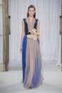 Sander Lak drew his audience during his show into a dream world of light and color that morphed from one tone to another.The room was bathed in blue, pink, purple and red lights that intensified the collection’s unusual palette — teal, sage green, brown and ombréd peach and ice blue, red and dusky blue. It looked beautiful, upbeat and very feminine.