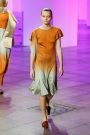 The Spanish label DelPozo switched New York for London and staged the show at the Royal Institute of British Architects. The collection was about the fuse of nature and art, with happy colors and simple, curving lines that followed the shapes of the body.