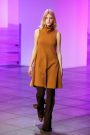 Other combinations veered more toward the Neapolitan ice cream sundae — in particular the light brown and yellow exploded hound’s tooth capes and the pink, camel and cream color blocks on an A-line dress and trousers.