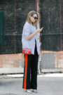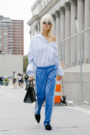 Give a girl a statement suit and she can conquer the world. No seriously a bold suit goes a long way. It work for business meetings, family dinners, fashion parties and just about everything in between. And as shoulders are turning into fashion’s focus point the statement suit of this summer has quite a lot to offer. It is bright colored, oversized and preferably has some kind of accentuated shoulder (pointy, strong, rounded). Something the influencers and streetstyle stars in our gallery already knew months ago. See how Carolina, Doina, Rebecca and Leonore worked this trend during the latest fashion week season. And yes, your hems will get dirty and distroyed, but it’s all part of the oversized, overstated look. Now it’s up to you to decide which sorbet shade you’re going to rock in the upcoming months.