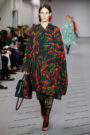 Phoebe Philo presented confident, distinctive women with a taste for classic luxury in her runway-show for Celine. That luxury looked advanced and individualized with a quirky cut, proportion, color or print. There was a sense of cosmopolitan practicality and versatility. Like the girl in the brown trench, crinkled as if it had been folded in a suitcase and worn with a leather hood tied around the neck, pants and galoshlike pointy leather boots. The woman in the black-and-blond fur coat over a casual navy V-neck sweater, aqua blue T-shirt and pants that zipped down over white heels, carrying a large, plain black canvas tote, like a reusable shopping bag, could have been trying to look like she wasn’t trying to look chic at the grocery store. A model — in a modernist Josephine dress, draped and gathered at the hem over lace tights and gold shoes — might have been headed to date night. Those carrying big fluffy blankets with their tuxedo tailoring and exotic prints, suggested travel, as did the model in a lightweight white trench done in a map print. We’ll definitely find parts of this collection back in mainstreet collections.