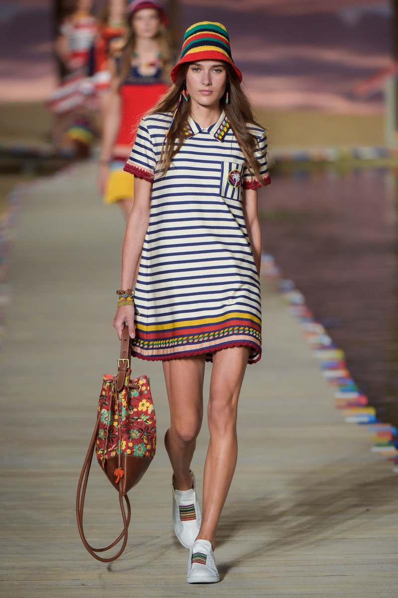 Stripes, you can bet your bottom dollar that it will pop up between the spring summer trends sooner or later. How many trend reports we’ve written on stripes the past couple of years… This season is no exception; the stripe is widely represented at some of the biggest international brands. Dolce & Gabbana introduced multiple bright colored versions of the broad stripe on their skirts and dresses. Prada introduced countless variations of the striped skirt suit. At Missoni the airy, colored knitwear pieces had stripes all over. As Alexander Wang focused on monochrome sporty stripes. Tommy Hilfiger, Stella McCartney, Max Mara and House of Holland joined in on the fun. While we’re stacking up on anything bright and striped. Horizontal, vertical, on airy knits, floaty silks, for night, for day, to work, to the beach. And if you can’t figure it out; just opt for a Breton sweater and some destroyed denim and you’re dressed both classic and on trend.