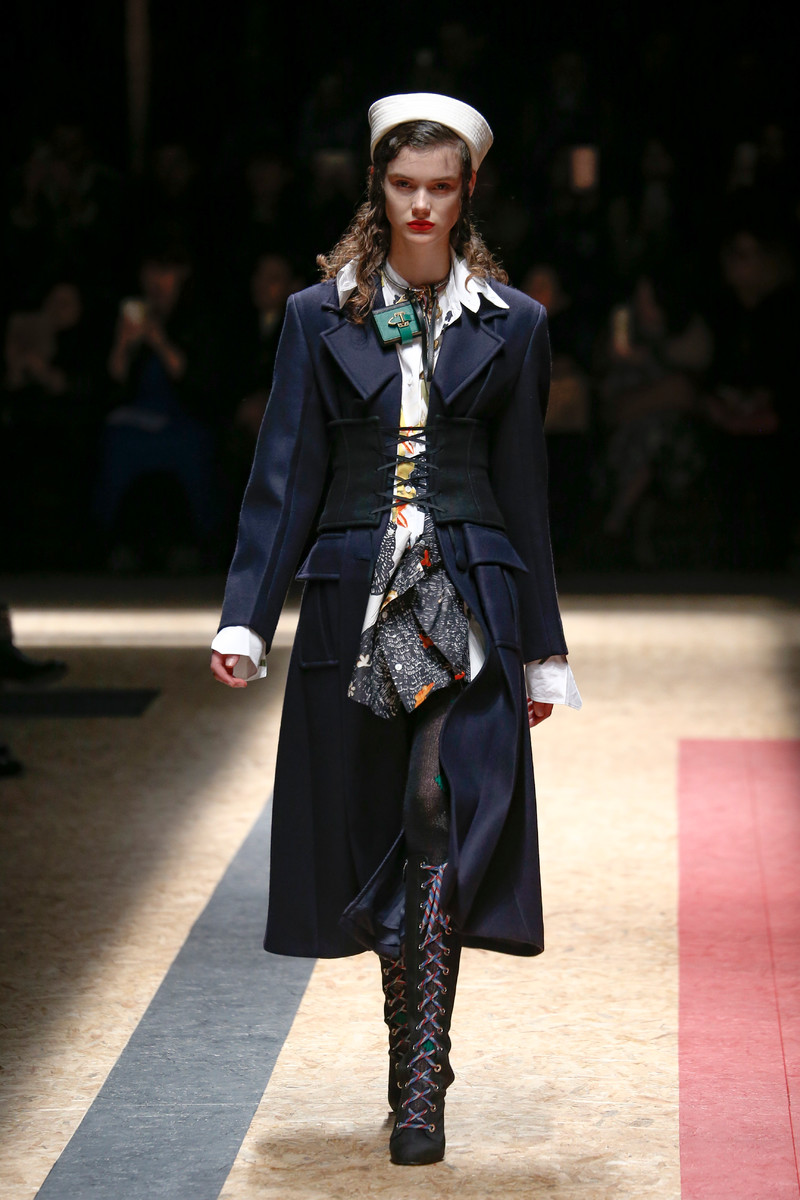 You can bet on preppy designers like Tommy to have a navy coat in his collection. But when Burberry, Prada and Valentino are jumping at it too, you’ve got yourself a trend. Unless you’re opting for a bright colored faux fur version, we discussed earlier, midnight blue should be the color of your army coat. And the bigger your buttons, collar (Hilfiger) pockets (Prada), belt (MiuMiu), stitches (Burberry) and patches (Coach), the better. Both Prada and Valentino also proved the navy coat doesn’t have to be so rigid. Have fun with it a little bit. Dress up and dress down with corsets, army boots and little bags (around your neck?!). A sailor cap (Prada), rock earrings (Proenza Schouler) or oversized beanie (Coach) might just top this statement coat off perfectly. Fall musthave, for sure.