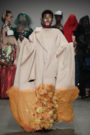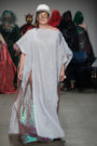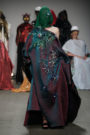 At Sunanda Chandry Koning the models had gone completely undercover. Their faces covered with large scarves, hats and glasses. A spooky effect combined with long cloaks draped over their shoulders. Some with a shimmer, one with a leopard print, another one with plastic pins and beads attached to it and there was one with floral appliques at the bottom. A fascinating collection for sure, but we’re not sure what to make of it yet.