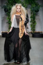 All models elegantly drove onto the runway in a wheel chair making a clear statement on diversity. And why not present a collection shown by models in wheelchairs and therewith portraying a refreshing image of beauty. As far as designer Kelly Sue is concerned beauty comes from with. Her fashion label Sue is all about diversity and this collection spoke about power, militancy and spirit.