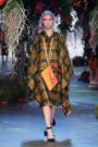 At Sunanda Chandry Koning the models had gone completely undercover. Their faces covered with large scarves, hats and glasses. A spooky effect combined with long cloaks draped over their shoulders. Some with a shimmer, one with a leopard print, another one with plastic pins and beads attached to it and there was one with floral appliques at the bottom. A fascinating collection for sure, but we’re not sure what to make of it yet.