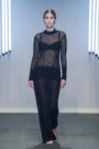 “With this collection I want to create peace in all chaos that surrounds us and shows the beauty that is still there”, explained Merel Glabbeek. Dark and moody was the vibe at her show. Starting with the loud desolate and gloomy music, ending with the black confetti falling from the ceiling, creating the right balance between structure and chaos. In between we were presented with a selection of nicely tailored long & lean looks. Wool jersey combined with materials like bamboo, canvas and lycra. With beaded embroideries that added to the luxurious feeling of the collection and gave the illusion of a new kind of fur. Shades of black, off white and pastel complemented the shapes of the fashion pieces. Unique, handmade pieces that together turned into collection ‘Hush’, defined by blended contrasts and strong, dark and feminine silhouettes. A collection that brought structure and chaos together.