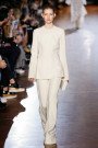 McCartney loves her Savile Row references and here delivered them with new femininity. Even at her most streamlined, she incorporated ladylike flourish. Mannish tweeds turned a shade gentle but unfussy in coats and dresses cut lean through the waist. The graceful ease continued for evening as McCartney made seemingly casual use of lush metallic jacquards and brocades, incorporating swirling insets into ivory dresses for a sexy effect.