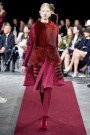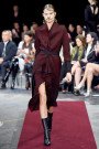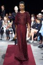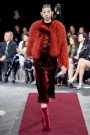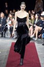 On Tisci’s runway the mix resulted in short, trim jackets over sleek pants which transitioned seamlessly to tailcoats, some with peplums or double cutaways; some piped in un-Brit scarlet. The tailoring was sensual but seldom arch, with considerable diversity within the sphere. For example, while most jackets veered sleek, a pair of jeweled stunners featured dropped shoulders and short, cocoon-like sleeves. Dresses came mostly in velvets – cut, printed, crushed – some corseted, some almost medieval in their fluid lines and Byzantine palette.