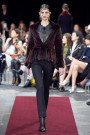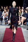 Slimane’s Saint Laurent woman is a bad girl, wearing leather leggings with cutouts all the way up the thighs; a black leather dress slit up to her undies, assuming she’s even bothered to wear any; and ripped and shredded tights above black leather ankle boots. The shoes were killer. Alongside the punky rock star stuff there were a good number of the kind of animal-print capes, navy peacoats, leather motorcycle jackets, and patchwork furs.