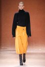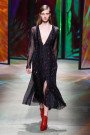 Seventies vibes were in the air at Thakoon. Yet, after so many seventies inspired shows the last couple of months, Thakoon managed to take it to a new, fall/winter level. No plain flared denim, brown suede and fringes here. But rich colored stripes, exotic floral prints and midi lengths instead. Seductive sheerness and sparkling embellishments covered the festive part of the collection. As loose fitting pleated pants, white shirts and fur accents represented more business-y looks. East inspired references could be seen in the colorful embroideries and shiny silk. While flared flapper kind of skirts had a certain boho vibe. A sheer pleated, floral printed skirt matched with a sequined navy jumper was one of the most wearable and modern looking attires. A style bound to be copied by bloggers, editors and classy lady’s all around. To strut or to swirl in and make an impressive entrance in any case.