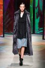 Donna Karan’s whole career has been inspired by New York City. For Fall she used the nighttime skyline as a backdrop for the runway, and made the blacks and grays of the buildings and the glinting golds of their lights her show’s central colors. Perched on platform sandals or boots, the collection’s long, lean silhouette owed something to the city’s new class of super-scrapers. New York is tall and getting taller. It’s a melting pot, too. Obi-like belts and origami folds on the one hand and opulent, burnished brocades on the other conveyed something of its multicultural glamour.