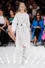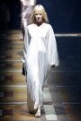Celebrating 125 years of Lanvin designer Alber Elbaz looked at the past. Like one does. He drew from Lanvin archives full of brocades and other rich prints. But he also brought back some of the women who modelled for the brand in the previous years (Lanvin is familiar with putting ‘older girls’ in it’s campaigns). Ladies like Amber Valletta, Kirsten Owen and Violetta Sanchez modelled the festive collection, that began with sensual evening slipdresses and ended with catchy cocktail creations. Quite minimalistic designs at the beginning of the show were given some eye-catching details. Like a series of buttons on the side of a blue gown, like large stitches at the shoulders of another one and like shiny buttons on a double breasted navy jacket. Apart from a few tight creations fits were loose and layered and – more than once – chest revealing. As for the cocktail numbers, lace and mesh were the fabrics of choice, mostly printed and cheerfully decorated by necklaces, clutches and wide belts. A celebration of fashion and femininity, no matter what age. Who’s counting anyway?