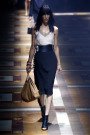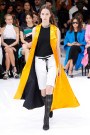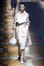 On Friday the Dior show took place in a new show venue. Cour Carree where Marc Jacobs used to show his collections for Louis Vuitton was the place where history and future met. Raf Simons put his catwalk in the Louvre and by housing it in a mirrored silver box almost made it invisible. Within that box the area was divided into four salons and the floor had futuristic circles of light reflecting on them. The designs too had both historic as well as modern references. And we’re not talking about the fifties or the seventies here, no, Simons took us back a few centuries (18th century). He used references to historic undergarments and took on shapes of hips and sleeves from that same period. He kept things fresh and contemporary nevertheless. Looks in black, white and a splash of pink and yellow towards the end (during a bermudas and long jackets finale) were clean and breathed a chic kind simplicity. Even though colourful embroideries and rows of tiny colored buttons, highly decorated shoes, leather belts and chunky necklaces gave the looks a unique touch. Not to mention those bags, that will do oh so well next season.
