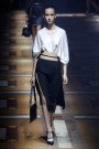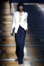 Sebastien Meunier’s second collection for Ann Demeulemeester was vert Ann. All the label’s distinctive ingredients were present. Deconstructed tailoring, check. Black & white, check. Long & lean layering, check. It made up for the ultimate signature Demeulemeester collection, although critcs stated it could have been more renewing. Perhaps Meunier was being too polite, too loyal to Ann to change things radically. Some unexpected extra’s would have been welcome. Yet there’s no arguing the models didn’t rock their monotome ensembles. And we were happy to see some white fairies along the more doomy characters.