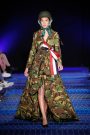 And still Benchellal managed to give his collection an absolute feminine twist. He did so by using lots of tulle, satin and taft. By adding ruffles, playing with volume and creating larger than life dresses. An XL army green dress seemed to be made out of a complete tent. The designer even managed to come up with an impressive bridal gown, which the model sported with a camouflage jacket and a blue helmet. Such an interesting contrast! If only our soldiers and officers would go out dressed like this..