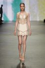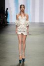 At Winde Rienstra we were all hanging on the edges of our seats, scared one of the models might take a tumble. Even with the help of the male seaters, who accompanied them and held their hands almost till the end of the runway. That’s how high and uncomfortable the shoes were. They were pretty though, made out of see through crystal-like platforms with touches of blue and green and straps with small wooden balls. Yet without focusing too much on the footwear there were outstanding clothing pieces as well, inspired by abandoned Russian country homes. As a male voice slowly spoke endless lines in Dutch and Russian creations made out of wood and felt very slowly followed each other on the runway. A lot of black felt with white lining, pink degrade and some floral prints were in the mix. Small bags were tossed around the models’ shoulders, blue dots were the accents on a series of looks and golden studs were the detailing on belts and shoulders. The last outfit, a tiny body piece with cut-outs shown by the only model who walked on her bare feet, was completely covered in studs. A Forgotten Path; interesting collection… food for thought.